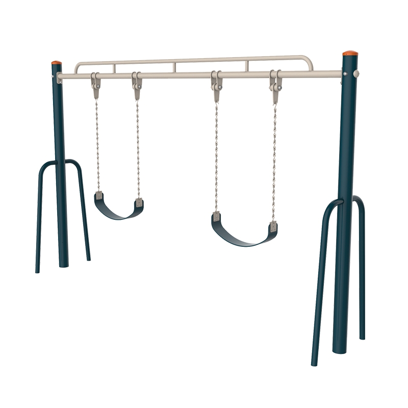6、秋千的摆动中心距地面的高度1871mm,其座板上表面距地面之间的距离500mm,座板外缘距支承立柱内侧的距离628mm,中间部位无支撑立柱的多位秋千的相邻座板外缘之间的距离1042mm,(符合5.12.2.3.4要求);